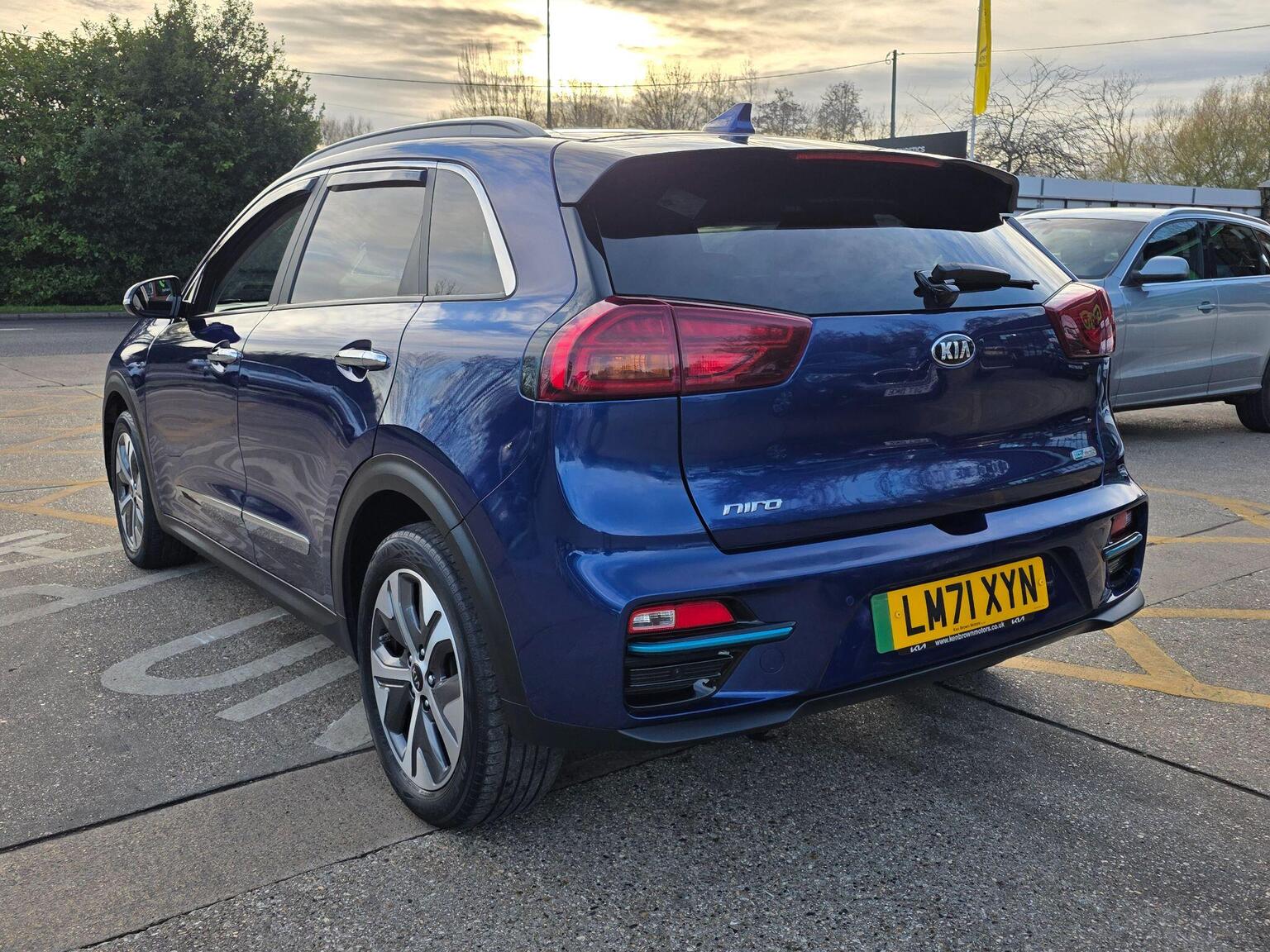 This 2021 Kia Niro 4+ electric vehicle offers an impressive maximum range of 282 miles from new, ensuring you can travel further on a single charge. As an electric model, it boasts a substantial 68 kWh battery capacity, providing efficient and smooth performance. This particular Niro 4+ comes equipped with a range of desirable features, including LED headlights for enhanced visibility, heated outer rear seats for passenger comfort, and a heated steering wheel for those colder journeys. Safety is also a priority, with Blind Spot Detection and Rear Cross Traffic Assist included, alongside Adaptive Smart Cruise Control with Stop and Go functionality for relaxed motorway driving.